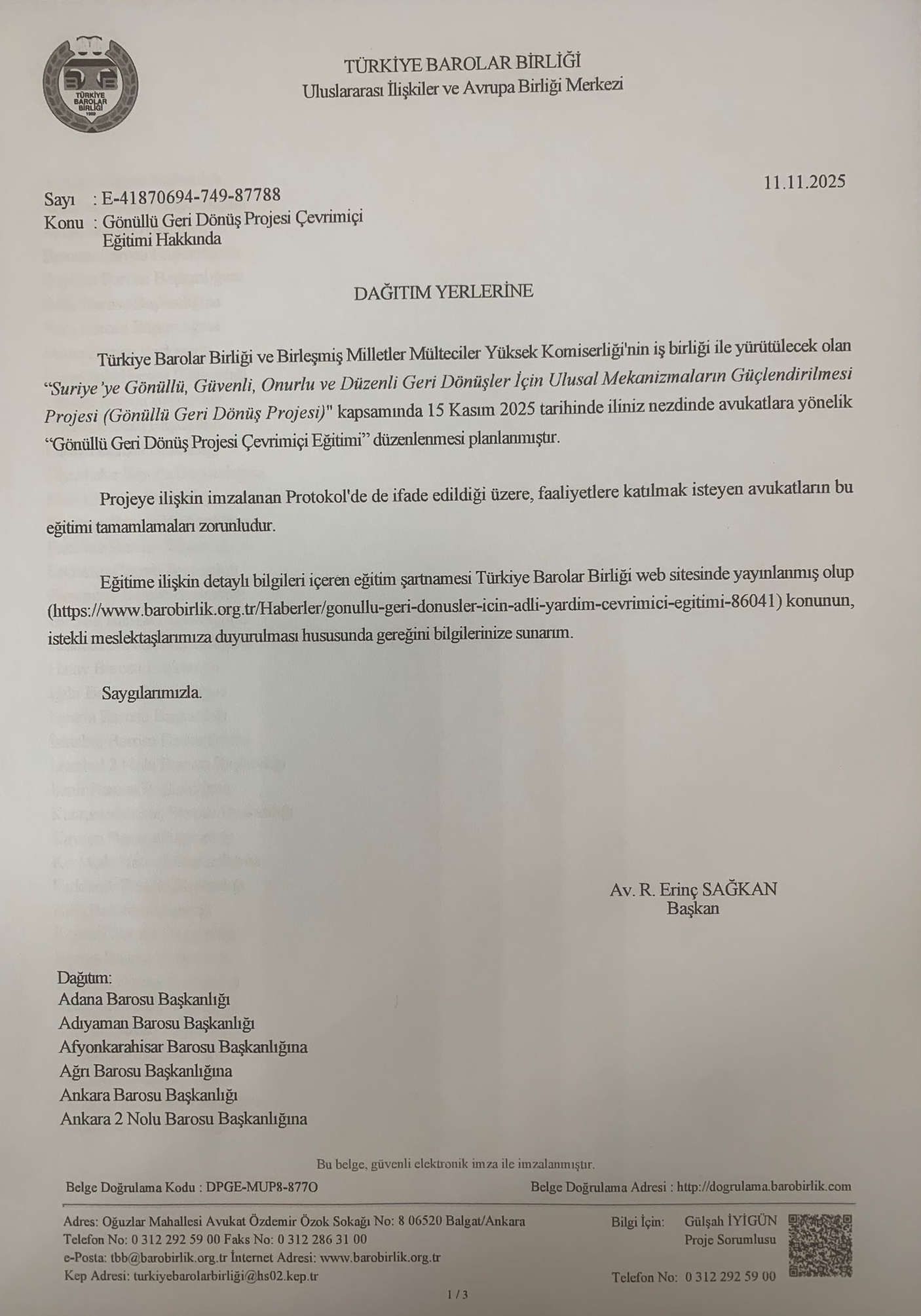 GÖNÜLLÜ GERİ DÖNÜŞLER KAPSAMINDA ADLİ YARDIM ÇEVRİMİÇİ EĞİTİMİ