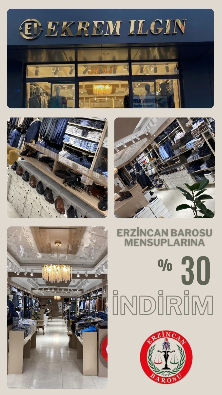Erzincan Barosu ile Hatemoğlu Giyim arasında yapılan indirim anlaşması kapsamında, meslektaşlarımız %35 indirimden faydalanabilirler.